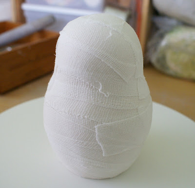 When the clay is completely dry, I will take off the bandages and hope that some of the bandages impression stays there.
